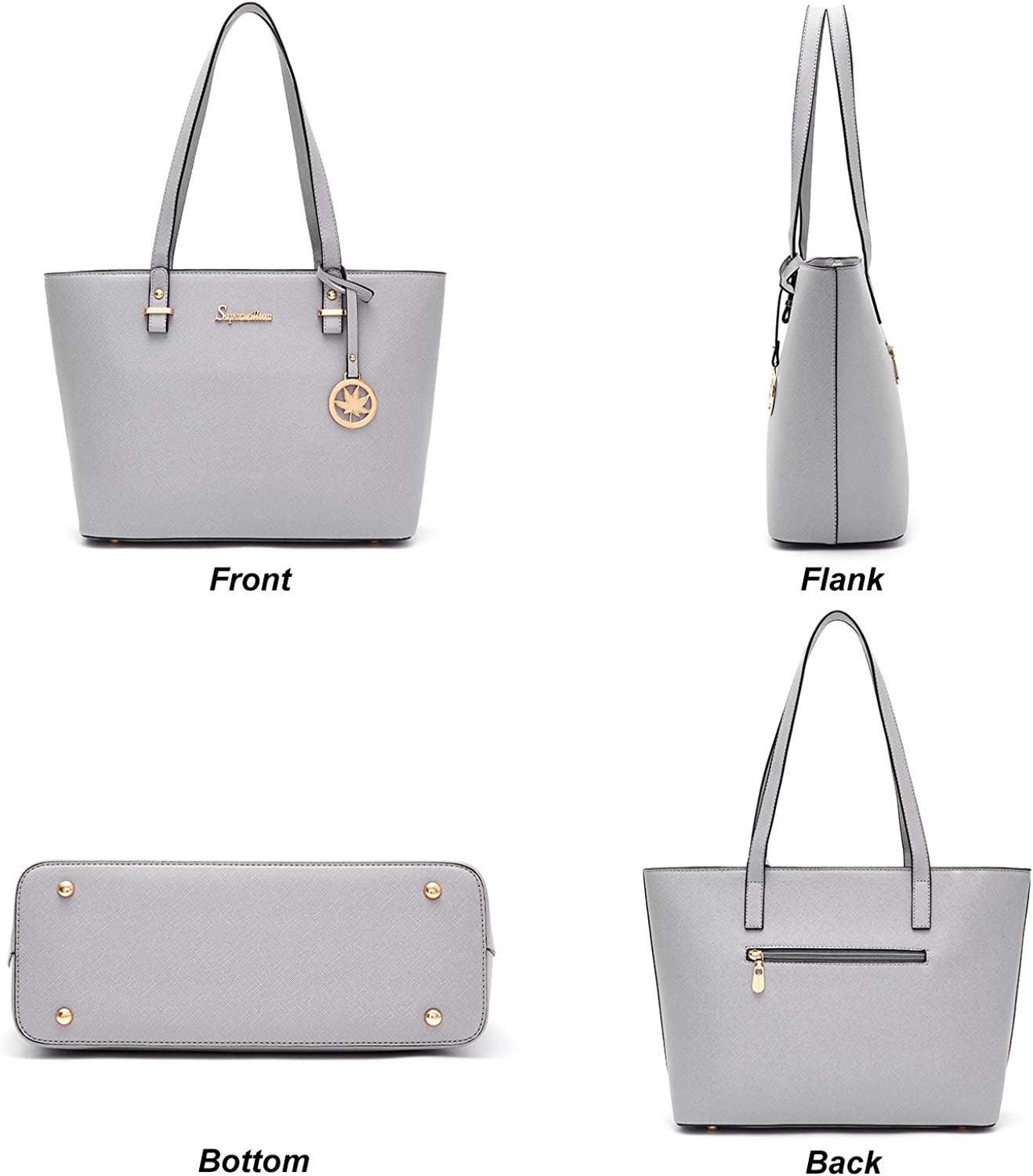 • 【Pockets】 Tote bag: One main compartment with one interior zipper pocket and two slot pockets. 5pcs purse set include large tote handbag, messenger bag, wallet, clutch and card holder. The purse set can hold your iPad, wallet, makeups, phone, little water bottle, perfumes, gloves and other daily use and keep them organized.