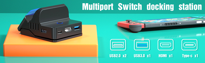 - Multiport Switch Docking Station:Switch docking station with USB2.0 X2,USB3.0 X1,HDMI X1,Tpce-c X1 port.Switch LAN adapter plugs into ultra-high transfer speed USB3.0 port. Increase your advantage in the game.Switch docking station compatible gamecube adapter support multiplayer online games. Playing Super Smash Bros with friends or family during game time.
