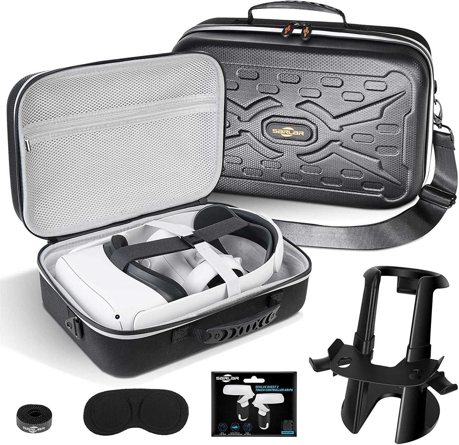 Safety: Made of hard EVA lightweight material,Fixed elastic band inside, waterproof, Shockproof, Stylish and Durable Guaranteed to prevent any damage to your Oculus Quest 2 VR Gaming Headset and its accessories.
