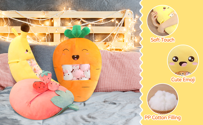 - ★A bag of soft stuffed rabbit toys, sooo cute! There are 8 small stuffed bunnies in each cute carrot throw pillow, they are eye-catching for your kids and you can take them out as home decorations.