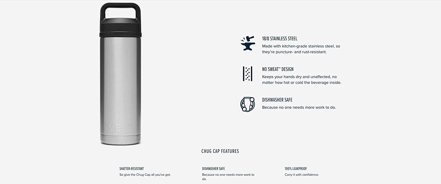 YETI Rambler 26 oz Bottle, Vacuum Insulated, Stainless Steel with Chug Cap