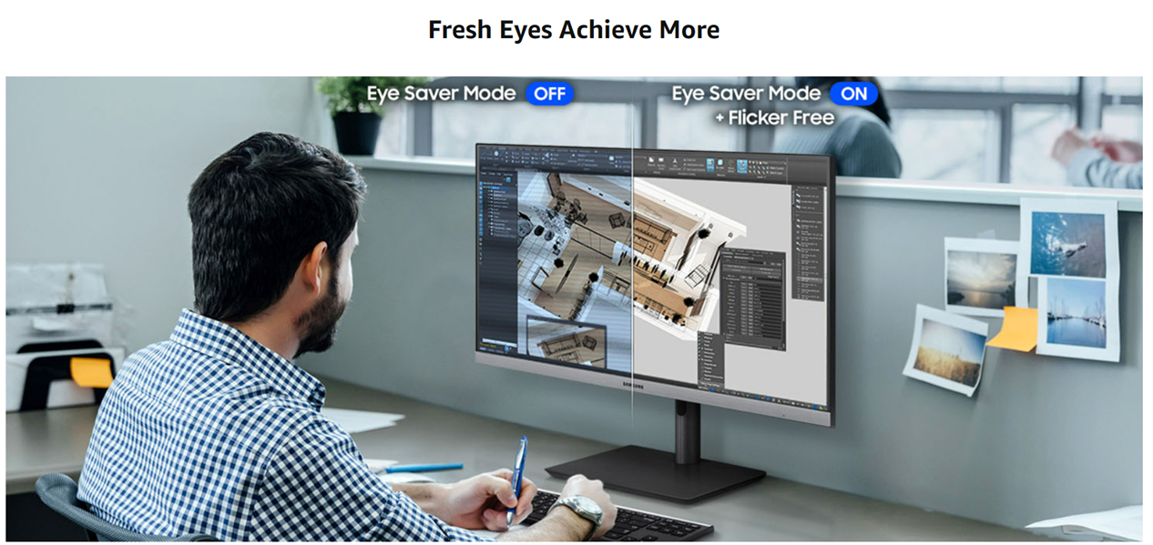 Protected eyes stay focused through the whole shift. Advanced eye comfort technology reduces eye strain for heightened concentration and greater productivity. Flicker Free technology continuously removes tiring and irritating screen flicker, while Eye Saver Mode minimizes blue light emissions.