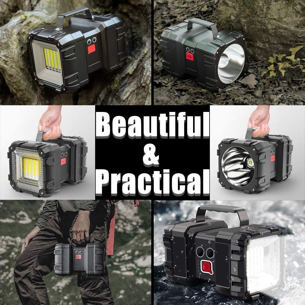 • 10000 Capacity BATTERIES- LED Searchlight is equipped with 10000 capacity batteries, up to 10-20 hours of battery life, enjoy your outdoor life overnight without worry, charge for your camera, phone, notebook and other devices during the trip.