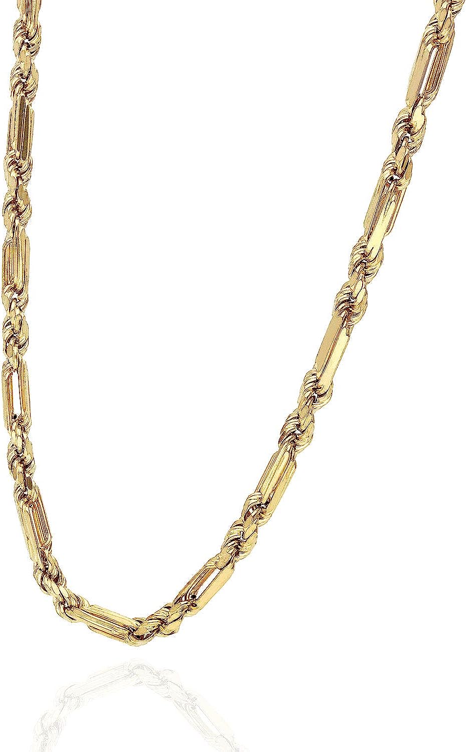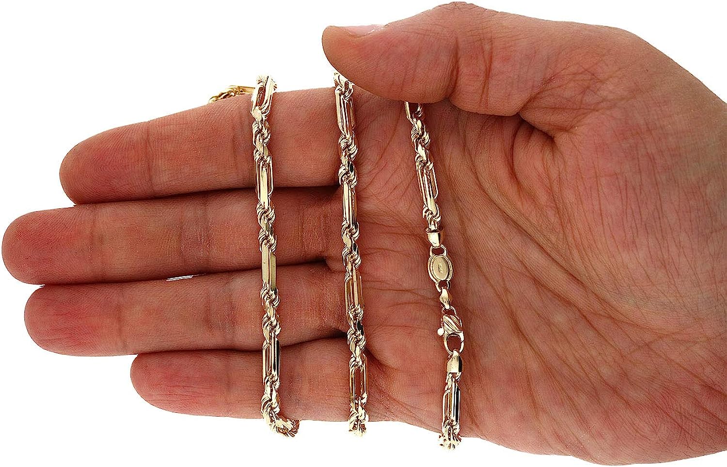 WJD Exclusives 14K Solid Yellow Gold 4mm Milano Figaro Rope Chain Necklace 20"-26"