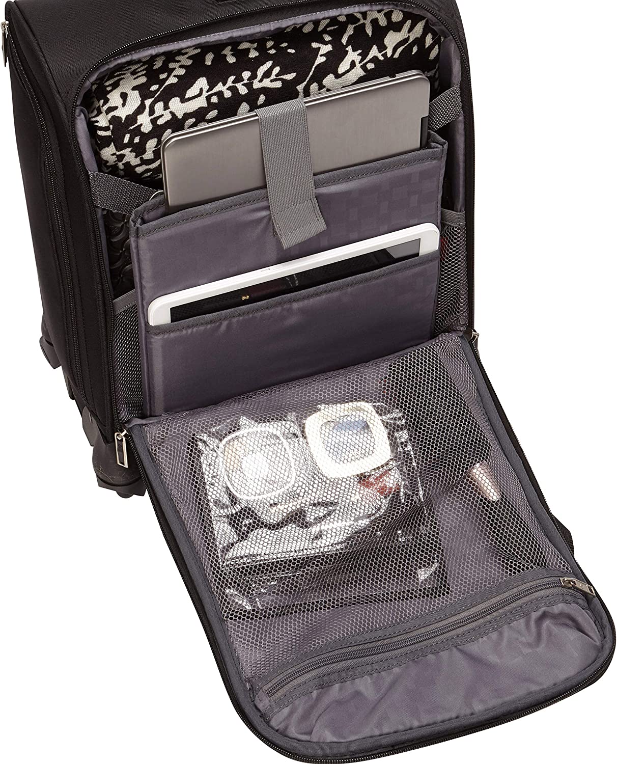 • Smarts Sleeve on back allows bag to be placed over handle of most upright luggage pieces