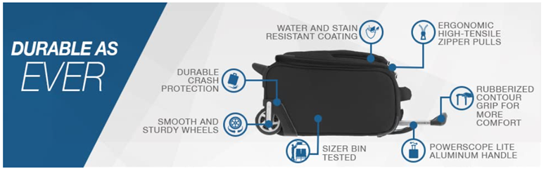 Meet your new favorite bag; Ultra-lightweight and super smart, the Maxlite 5 rolling tote serves double duty as a stackable complement to your carry-on bag or as a compact, all-in-one suitcase for short trips. Packing is easy and organized with a roomy interior, quick-access front flap and multiple pockets throughout for everything from essentials to electronics. Ball bearing wheel design and rear stacking strap provide complete flexibility for secure stacking and hands-free mobility. This Fit to Fly carry-on spinner has been sizer been tested to accommodate overhead bin space on most major US airlines. Backed by Travelpro's Limited Lifetime Coverage plus a new and expanded "Trusted Companion Promise", which covers the cost of repair for damage from airline or other common carrier for 1 year. Also, with our new Trusted Companion Promise, we will even reimburse shipping costs when you send your bag to us for warranty repair or replacement during that 1st year.