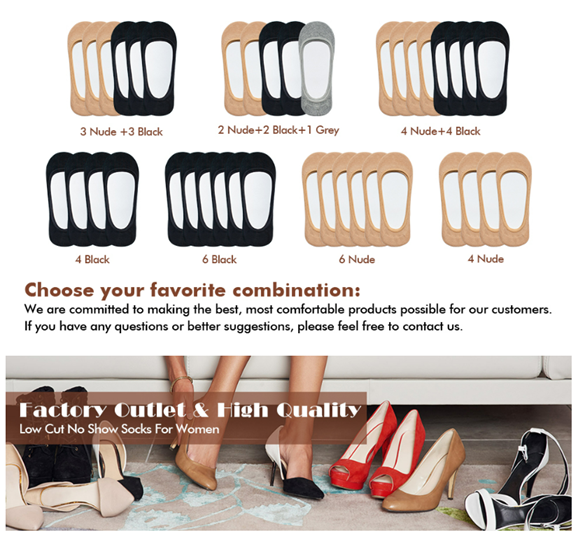 • 【Specially Designed for Women】The non-slip silicone at the heel prevents socks from slipping down.The low-cut shoe design makes it invisible. No show and non slip socks with basic colors, which are super suitable for a variety of lady's shoes, such as flats, heels, sneakers, and loafers.