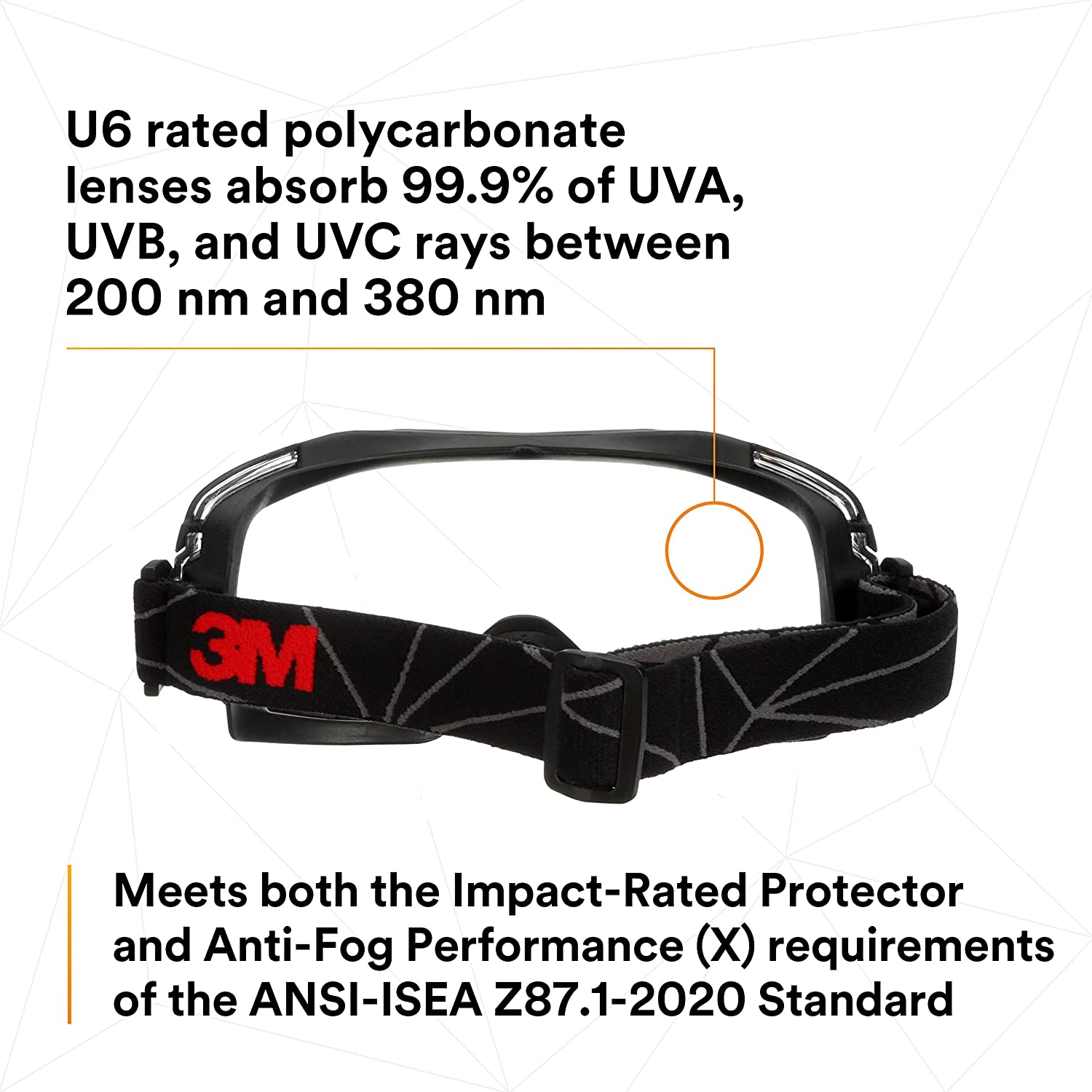The 3M Goggle Gear 6000 Series is a larger-profile goggle design that features models with 3M Scotch Gard Anti-Fog Coating, or Traditional Anti-Fog & Anti-Scratch coating. All models come with indirect venting to help reduce fogging. Both adjustable nylon fiber cloth strap, or neoprene strap, are available within the 3M Goggle Gear 6000 Series.