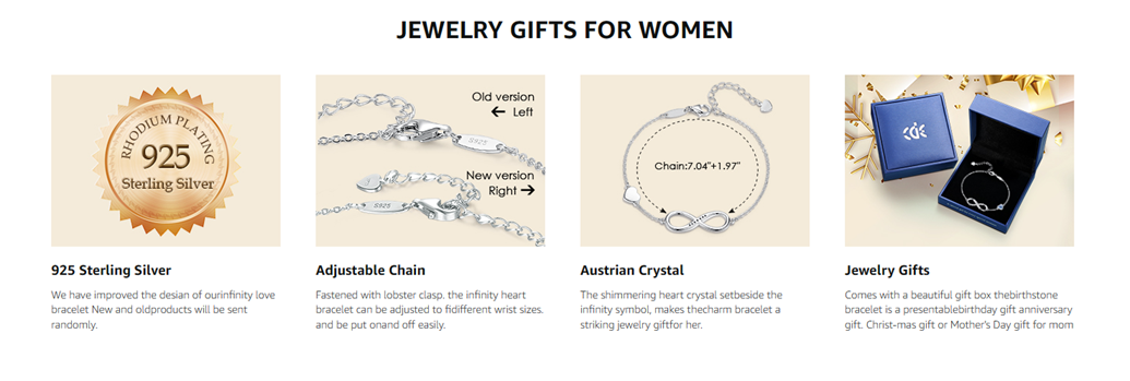 ? 925 STERLING SILVER BRACELETS ? CDE women’s bracelets are made of gold-plated 925 sterling silver. Fastened with a lobster clasp, this adjustable bracelet is embellished with a heart charm and an infinity symbol glittering with Austrian crystals.
