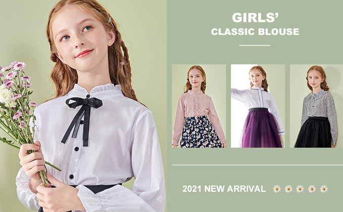 SOLOCOTE Girls White Blouse Ruffle Long Sleeve Button Down Shirts Princess Cotton Loose Soft Tops Spring and Summer 3-14Y