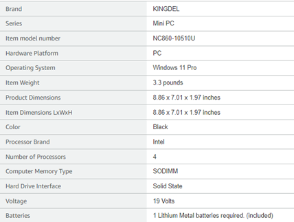 • What in Box: Mini PC, Power Adapter, Power Cable, HD Cable, Antennas, Mounting Bracket, Screws