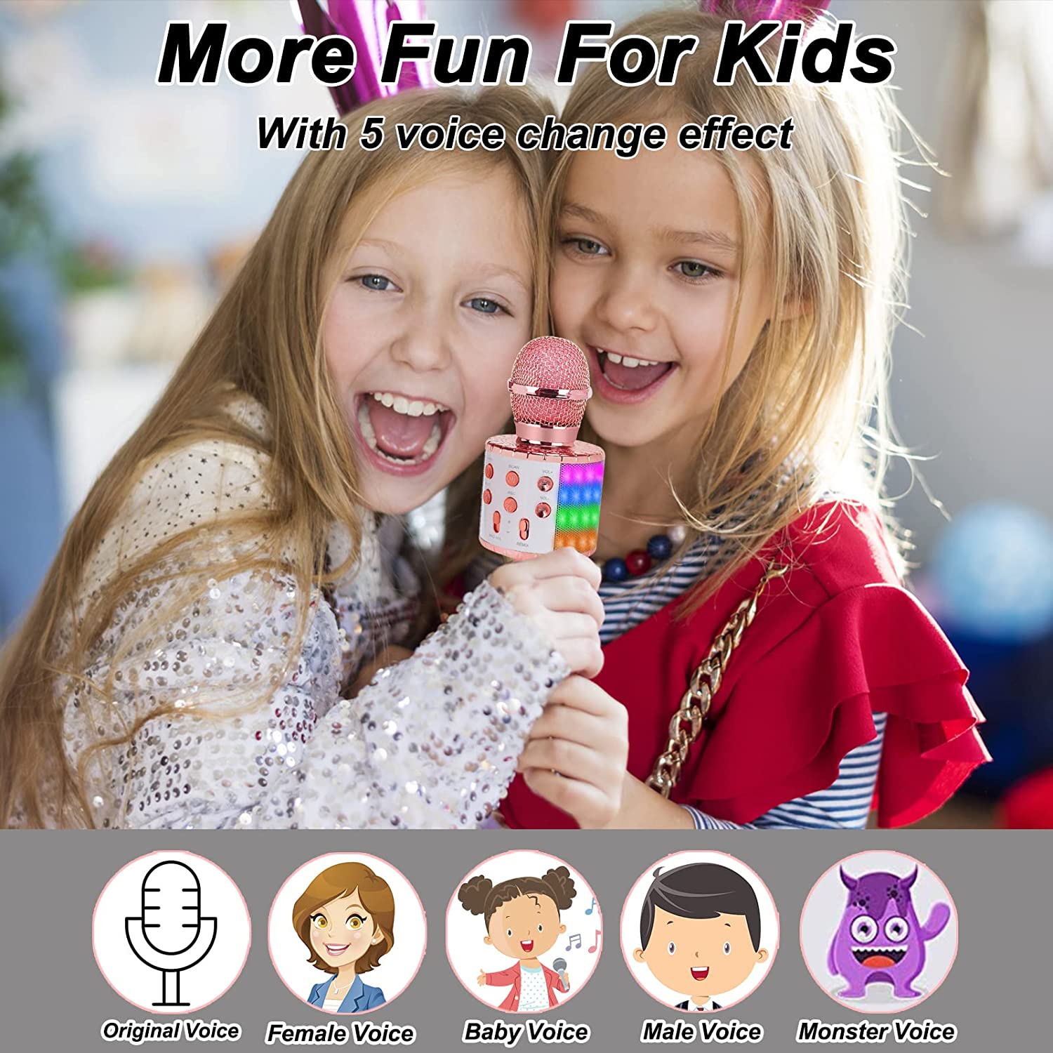 • ♪【4 IN 1 KARAOKE MICROPHONE】- Portable handheld wireless microphones can be used as microphone, Bluetooth speaker, loudspeaker, recorder. Awesome mini home KTV for music playing and singing at any time.Amazing girls toys age 6-8,girl toys age 6-7,girl toys age 4-5,toys for girls 8-10.,