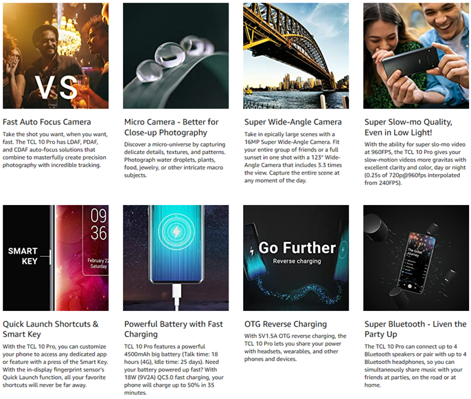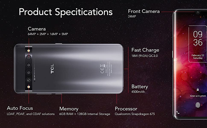 TCL 10 Pro's Qualcomm Snapdragon AI platform, paired with 6GB RAM and 128GB user memory, plus 4500 mAh battery with OTG reverse charging deliver a smooth and reliable performance for life on the go.
