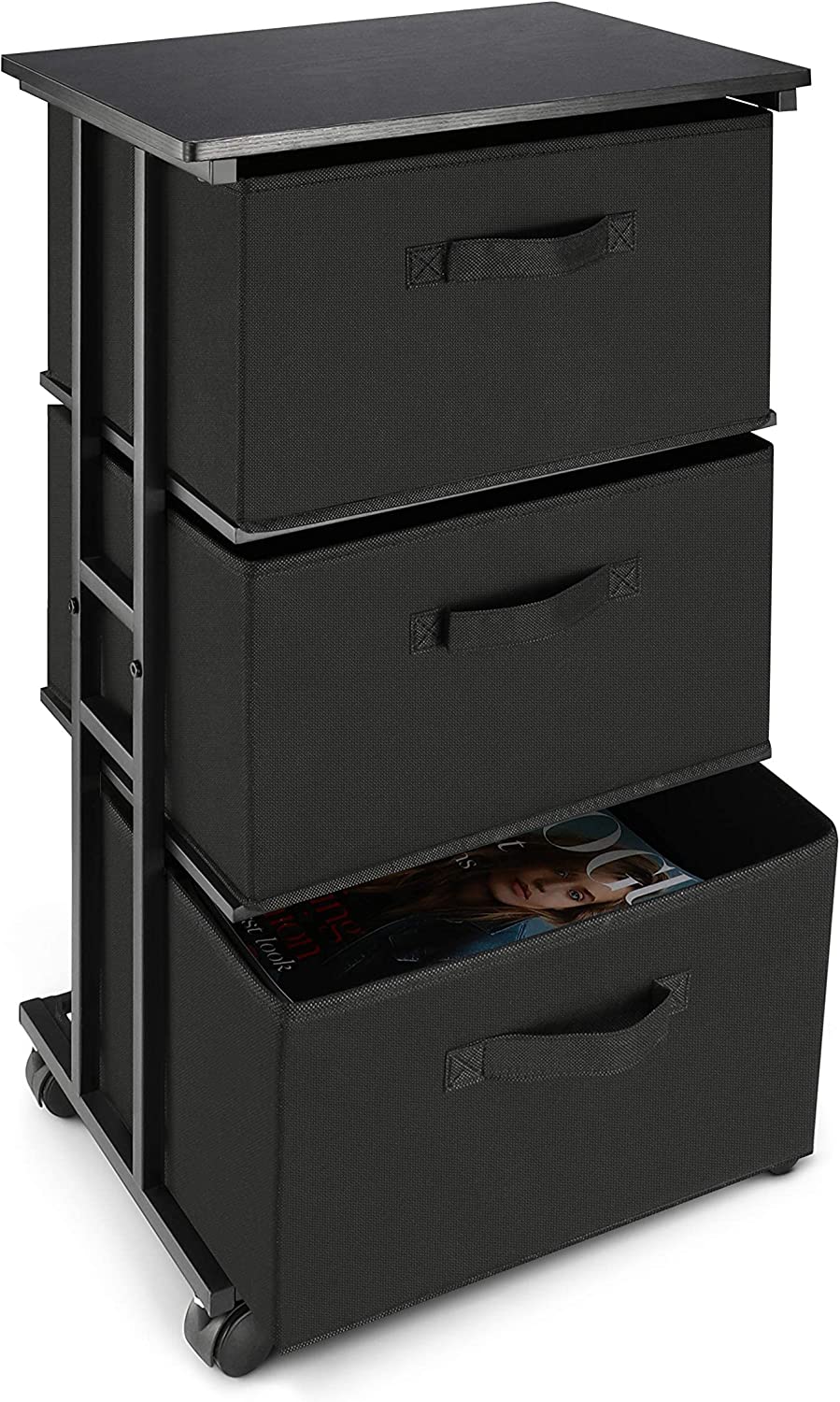 • Flexible & Controllable: The drawer with handle can be pushed and pulled at will; the wheels under the storage tower can be rotated 360 °, the paddles of the wheels can be pressed to fix the storage tower.