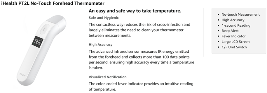 - Advanced Technology for Superior Performance: iHealth’s No-Touch Forehead thermometer is backed by rigorous, medically validated testing. The latest smart chip utilizes an optimized algorithm to ensure accurate results faster, safer, and more reliably.