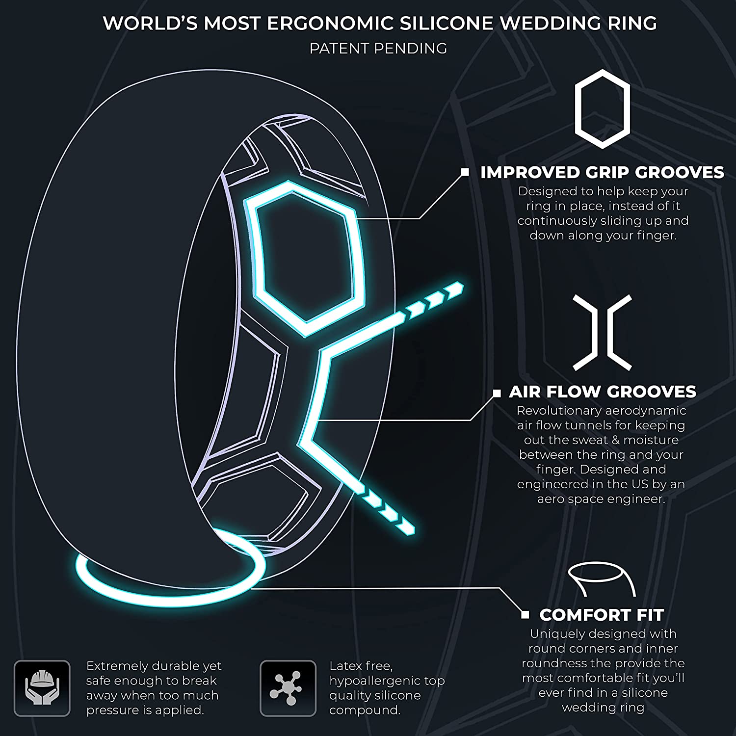 • TOP GRADE, HYPOALLERGENIC, FLEXIBLE SILICONE – Durable, yet flexible. Designed to break away when too much pressure is applied. The flexibility of this ring makes it also perfect for those with large knuckles or temporary swollen fingers.