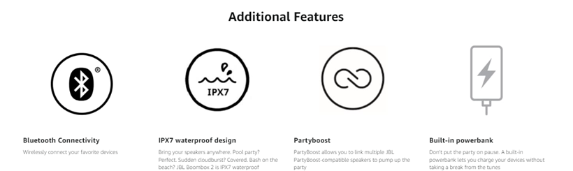 • IPX7 WATERPROOF: Bring your speakers anywhere. Pool party Perfect. Sudden rainstorm Covered. Bash on the beach JBL Boombox 2 is IPX7 waterproof for fearless outdoor entertainment.