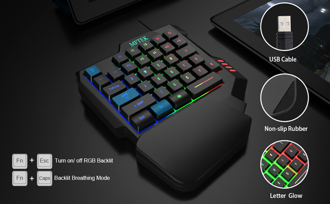 - 【Rainbow Gaming Keyboard】: Keybaord backlit keys: Fn+Esc: Turn on / off RGB backlit, Fn+CAPS: Enter Breathing mode. 35 letter glowing ensure you enjoy gaming freely in the dark. The light penetrates through characters and gaps can take you into a true-to-life gaming atmosphere. Support all keys conflict free, allows you to press or hold multiple keys simultaneously.