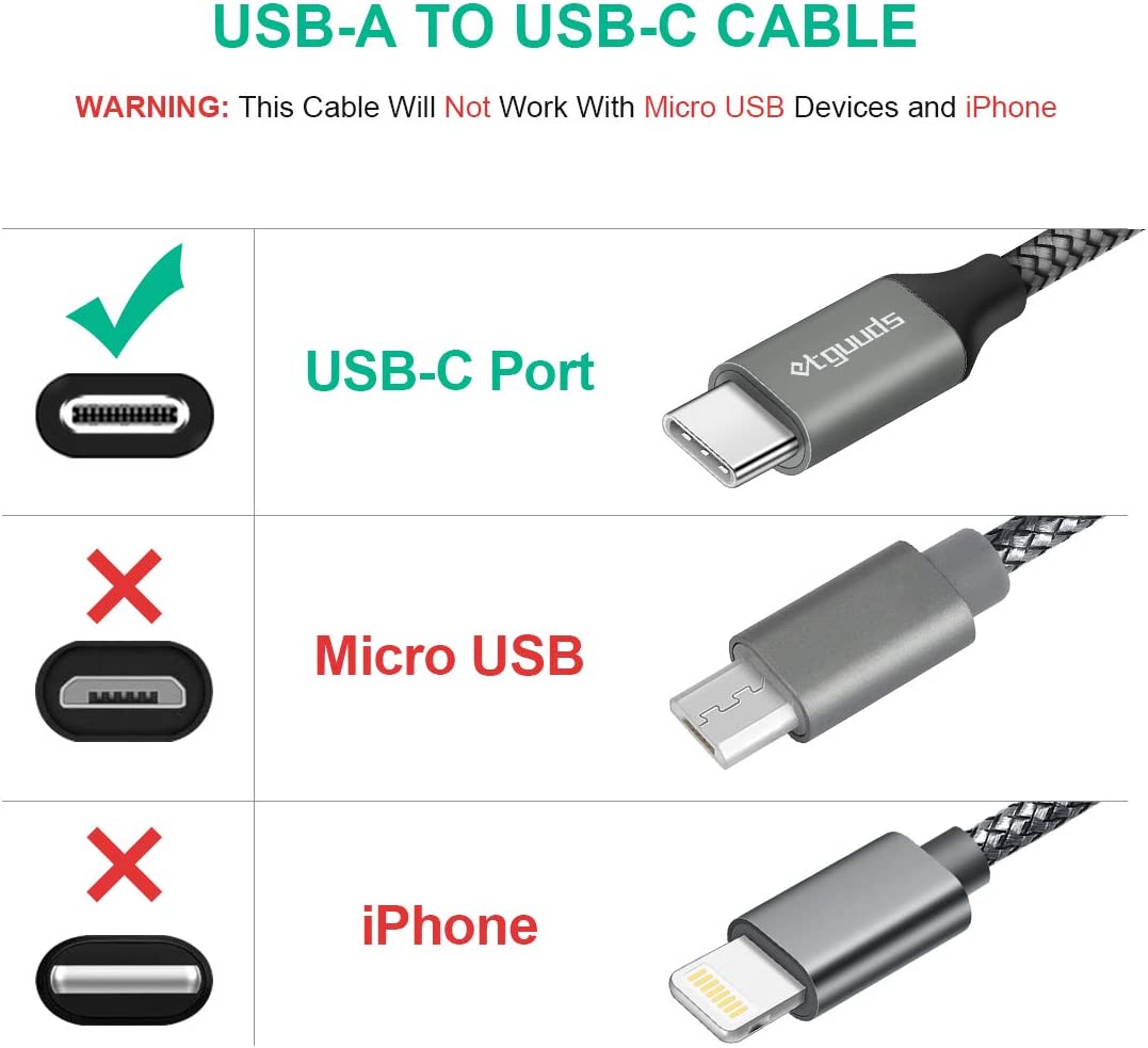 • 【REVERSIBLE CONNECTOR】:etguuds USB A to USB C cable keeps up with the latest trend of USB interface. The user-friendly design allows you to plug into all USB Type-C compatible devices without worrying about the orientation of the port.