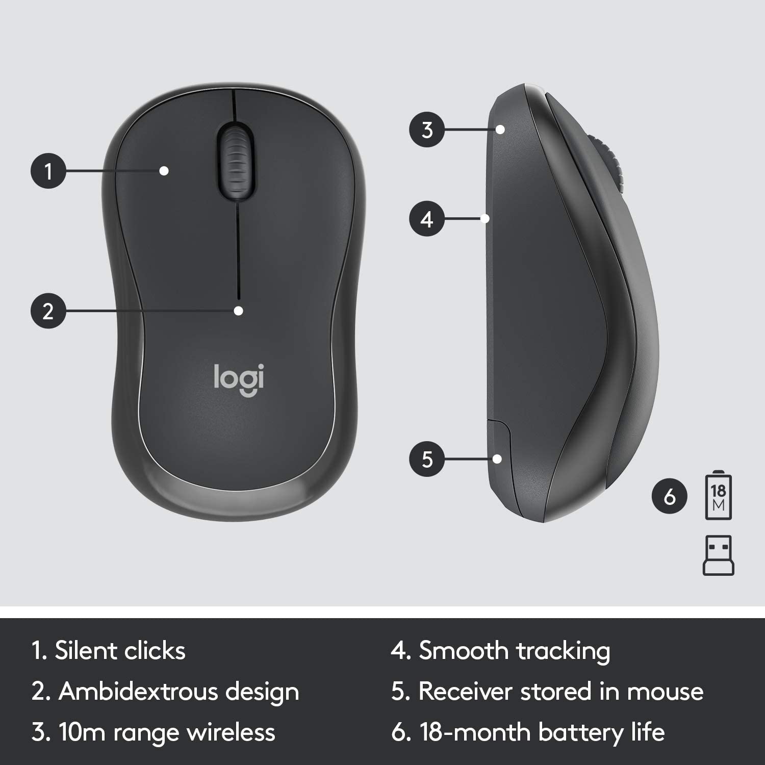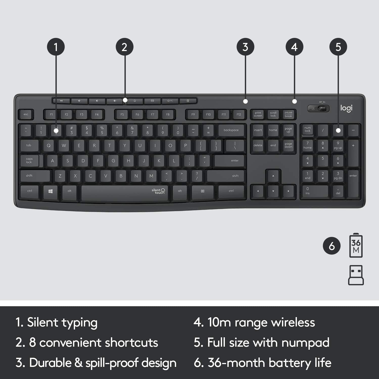 Logitech MK295 Wireless Mouse & Keyboard Combo with SilentTouch Technology, Full Numpad, Advanced Optical Tracking, Lag-Free Wireless, 90% Less Noise - Graphite