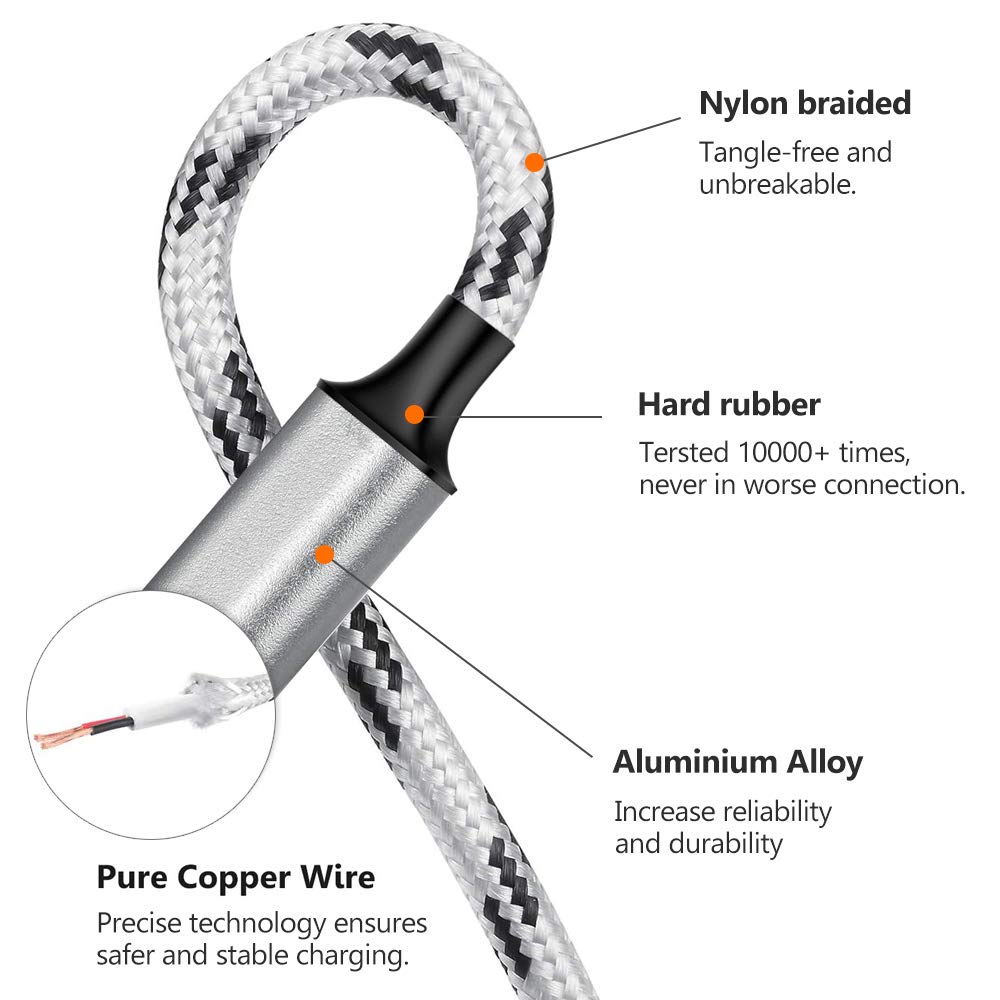 • ✔DURABLE MATERIALS: Powerful military fiber, the most flexible, strongest and most durable material, increases tension by 200%. Special strain relief design withstands 10,000+ bending tests. The high-quality aluminum housing makes the cable more durable and resistant to heat and corrosion. Ensure a longer service life.