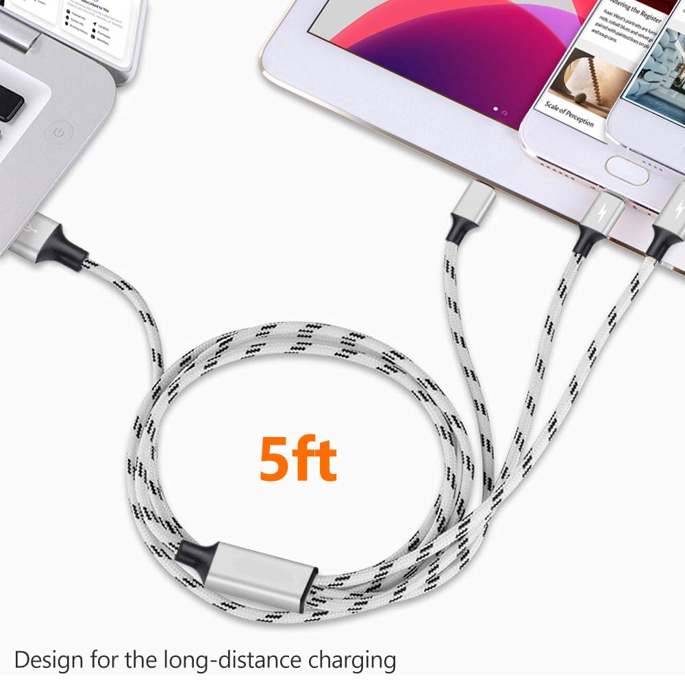Multi Charging Cable, 5ft 3Pack Multi Charger Cable Nylon Braided Multiple USB Cable Universal 3 in 1 Charging Cord Adapter with Type-C, Micro USB Port Connectors for Cell Phones and More