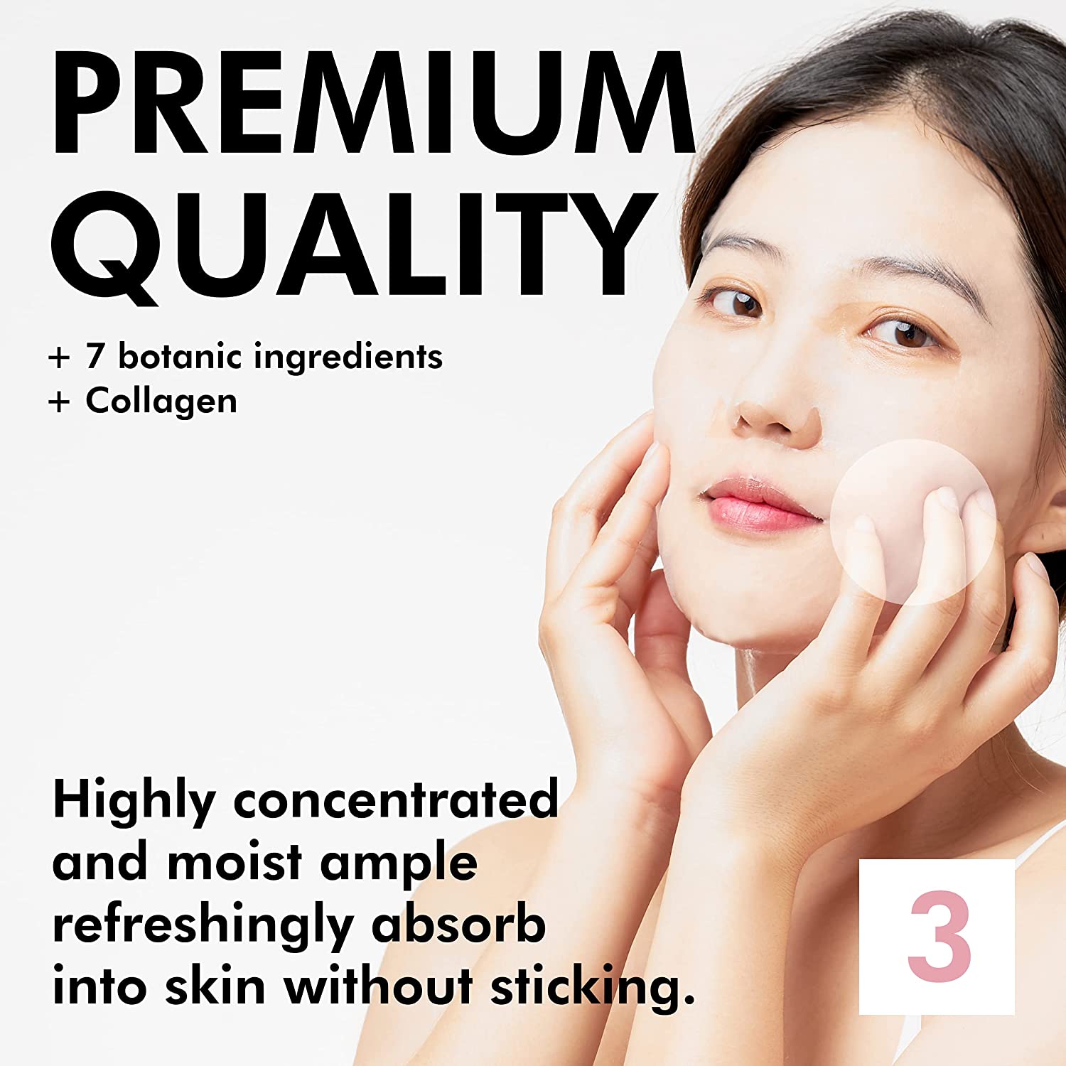 • EFFECT - This Korean Sheet Mask has the effect of smoothing, rejuvenating, plumping, and hydrating. This collagen face mask or skin care mask also help your wrinkles look less noticeable. Face Masks mask skin care is essential for all genders and all skin types. Our product will not disappoint you and will allow you to have healthy skin instantly!