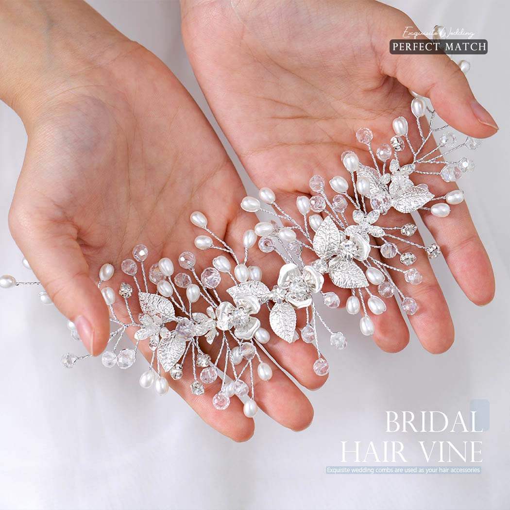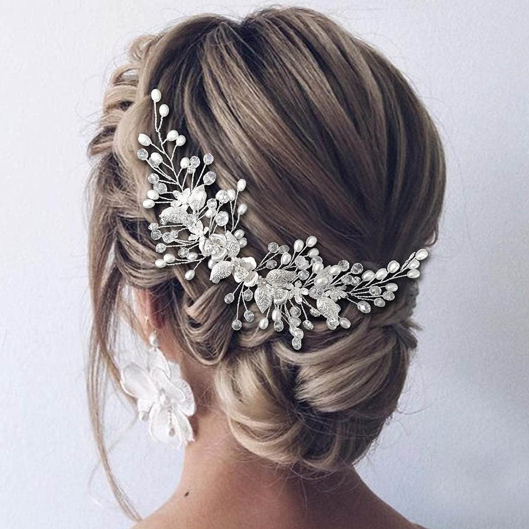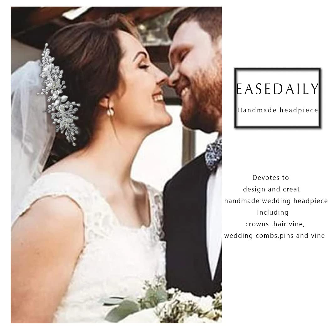 Easedaily Bride Wedding Hair Vine Silver Flower Leaf Bridal Headpieces Pearl Hair Accessories for Women and Girls