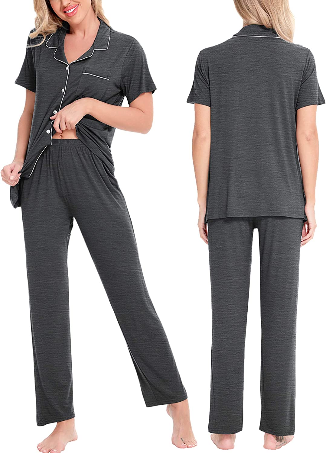 SWOMOG Women Pajama Sets Two-Piece Nightwear Short Sleeve Sleepwear Button Down Pj Lounge Sets with Long Pants
