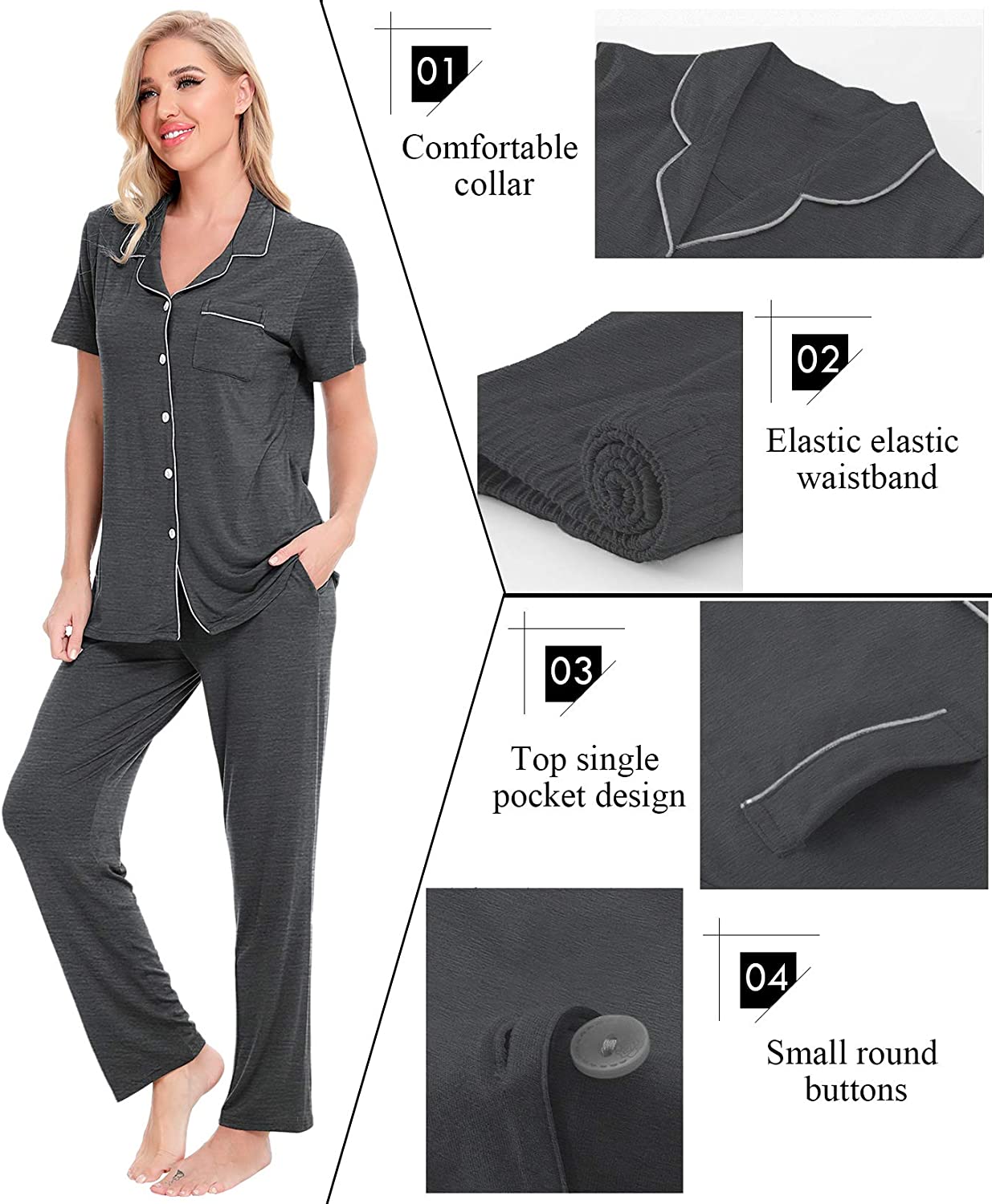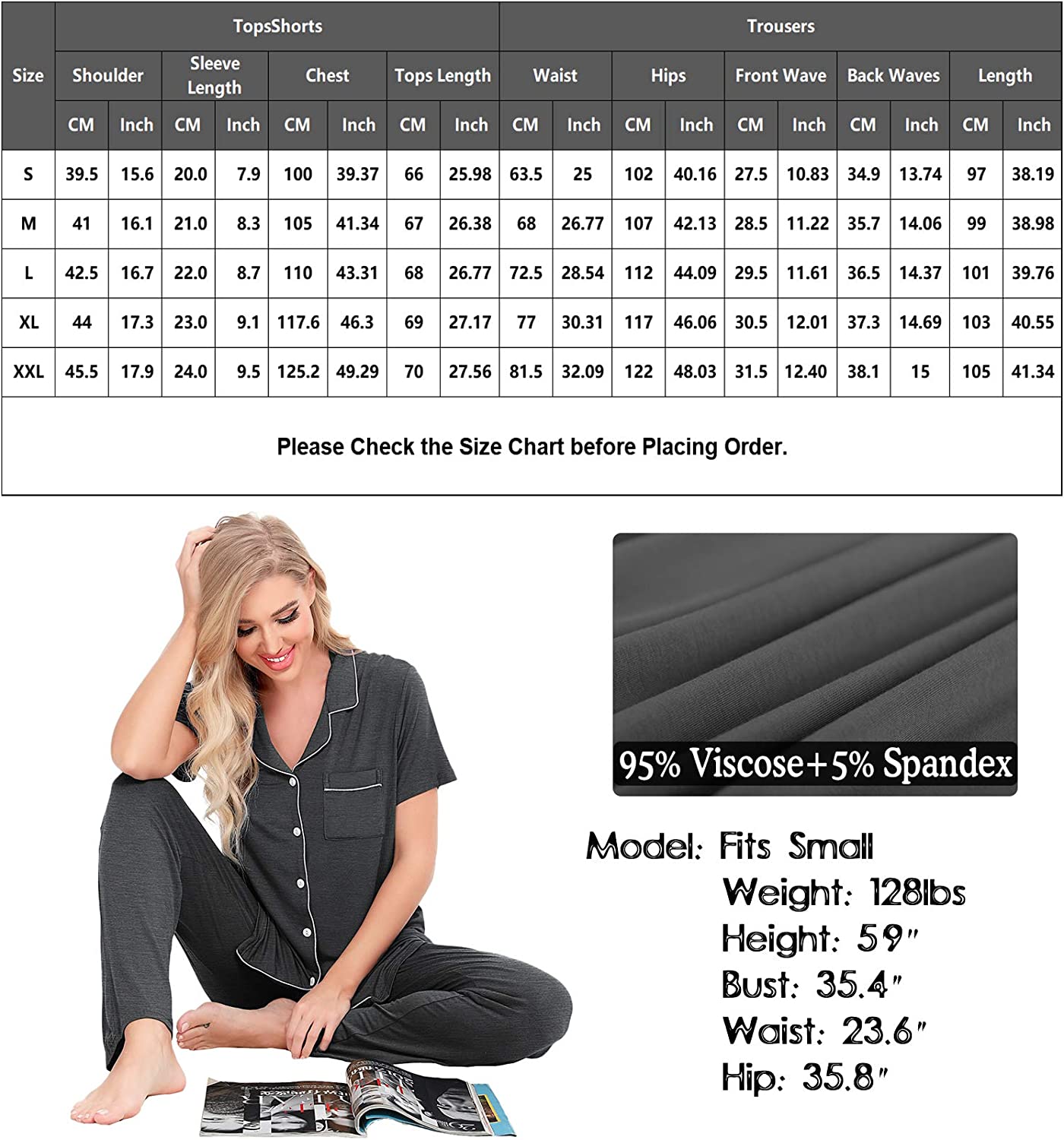 • Style: Two Pieces Pajama Sets with short-sleeved tops and long loose pants. Superior stitching, perfectly-lined hems, not easy to be deformed or got faded, safe and healthy. Enjoy the sleep peacefully, and the life that occupy the home.