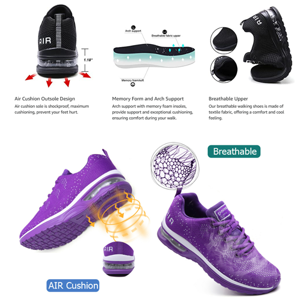 • DESIGNED SPECIFICALLY FOR THE AMERICAN PEOPLE: Womens running shoes made of mesh and synthetic upper materials offer a snug, sock-like fit. Knit tennis fabric, comfortable, breathable and lightweight. Good air cushion feedback. Making it popular with Women who love sports