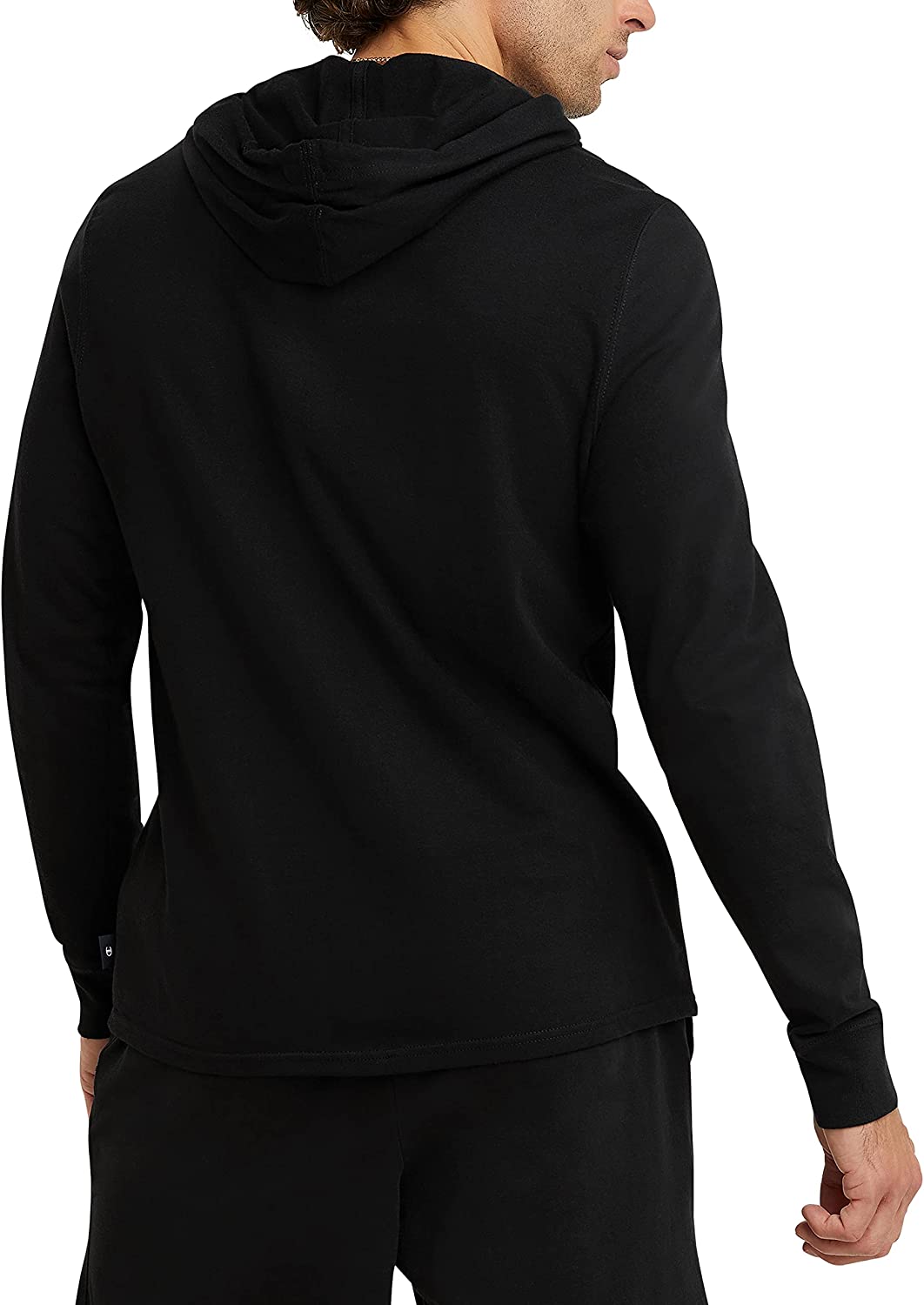 When the weather warms up and it's time to pack away your heavy fleece hoodie, reach for Champion's mid-weight jersey hoodie, which has all the style without the weight of fleece. This cotton jersey knit makes the perfect season-spanning layer, for a cool morning run, atop a tee with your jeans, even on the beach. Keeping it in your gym bag, your car, or take it along in your weekend tote where its versatility will serve you well. With classic hoodie styling, this cotton pullover has a drawstring hood, long sleeves with ribbed cuffs, and the essential kangaroo pocket. The straight sewn hem gives you plenty of room to move. Best of all, this jersey hoodie boldly displays the iconic Champion logo in script across the chest, with the "C" appliquéd on the left wrist. There are endless ways in which you'll appreciate the ease of this hoodie-style cotton jersey pullover for men.