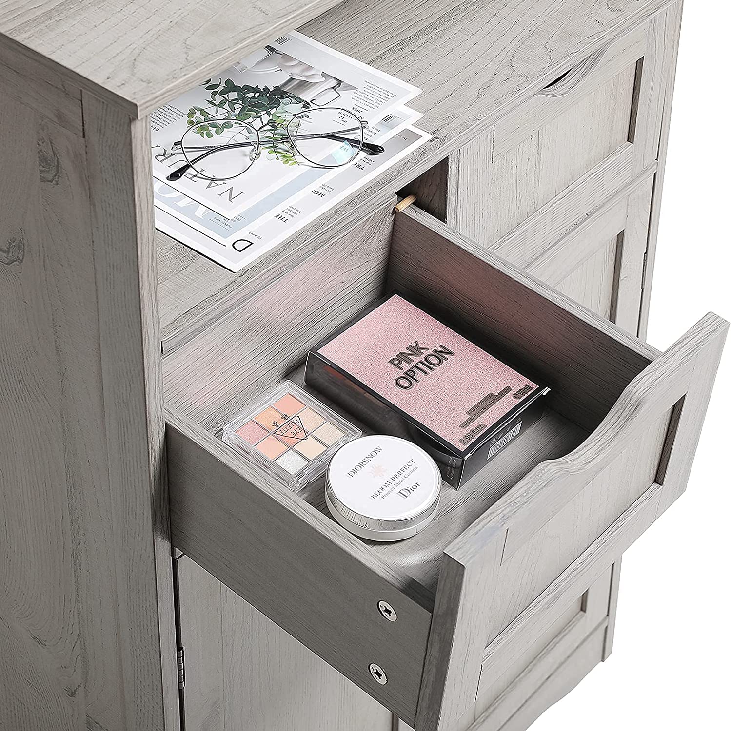 ⭐【Durable & Safety Structure】Crafted of P2-grade engineered wood, it won't deform like normal wood after years of using. Super sturdy, stable and durable, and with high load bearing capacity up to 200lb. Environmentally friendly surface ensures no harm and odorless. In addition, the cabinet could be attached to the wall with anti-toppling device, which gives it better stability and protects it from tipping over.