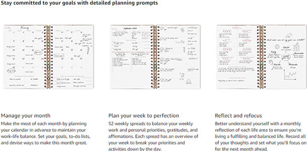 - ✓ BUILD A BALANCED & FULFILLING LIFESTYLE – With this time management planner, you will be able to not only plan your day-to-day life but also work on reaching your life goals and improving your work-life balance and overall well-being. You can do so by using goal-setting sections, habit trackers, monthly reviews, work-life balance areas, and separate work and personal to-do lists.