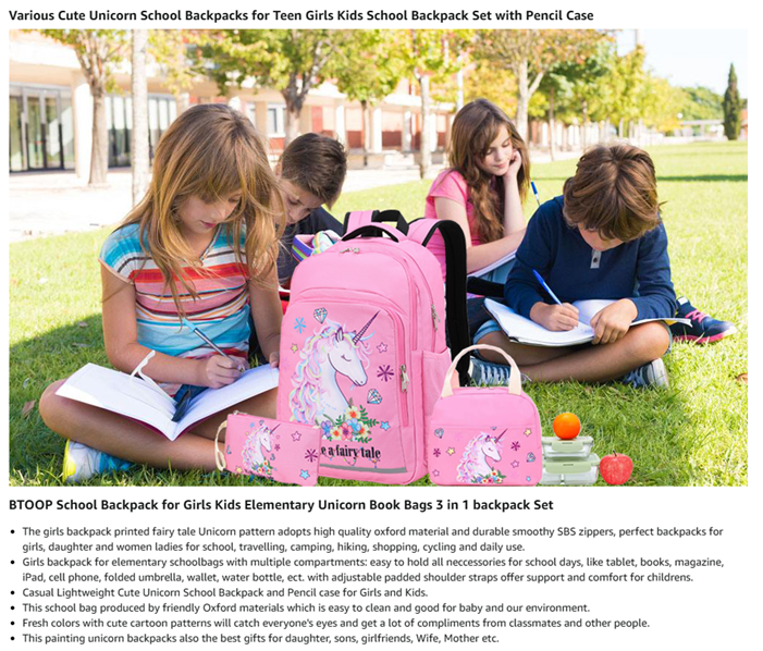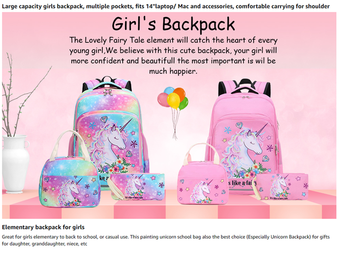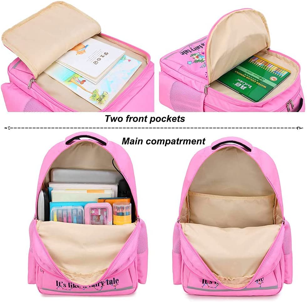 The cute kids backpack set has padded adjustable straps and padded cushion for carry comfort and protect your back, padded cushion can protect laptop or tablet.