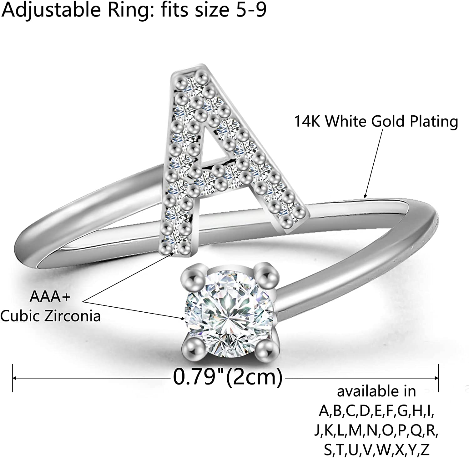 - SILVER RINGS FOR WOMEN: Crystal inlaid copper ring with multilayer plating process. 26 initial 3D wrap ring, choose the Alphabet Ring, which is important for you. your first name,your kid's name, your teens' name, your lover's name, daughter's name, mom's name,etc.