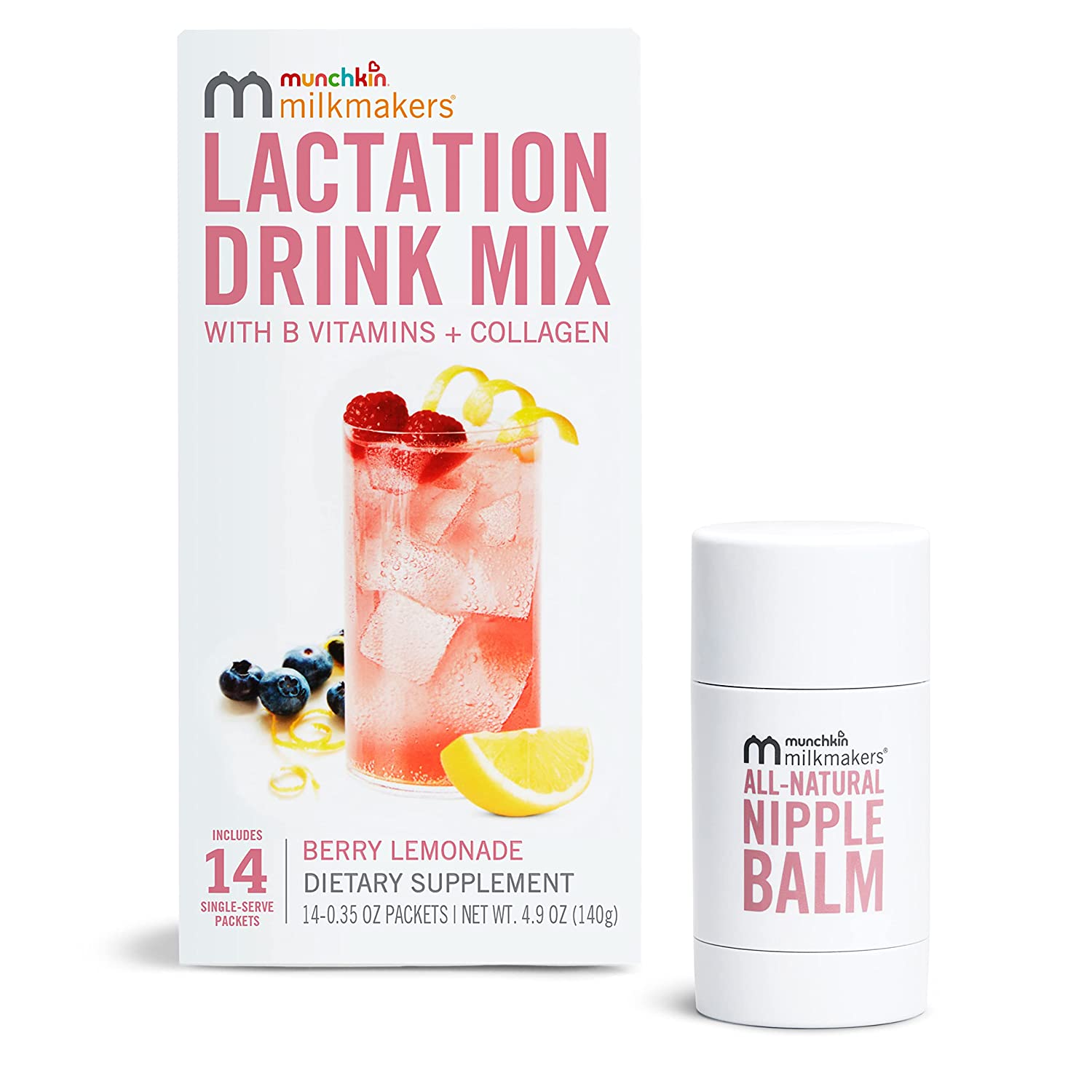 Munchkin® Milkmakers® Lactation Drink Mix Supplement with B Vitamins/Collagen/Fenugreek & Milk Thistle for Breastfeeding Moms, Berry Lemonade, 14 Count