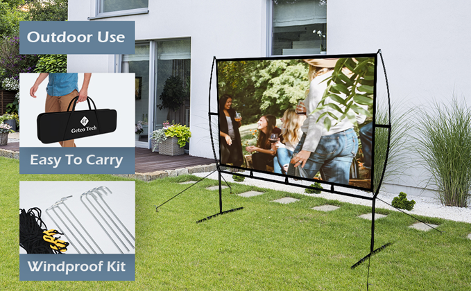 You can use an outdoor projector screen just about anywhere — in your backyard, by the pool. GT GETCO TECH projector screens can also be used indoors, giving you total versatility in how and where you set up your movie nights.
