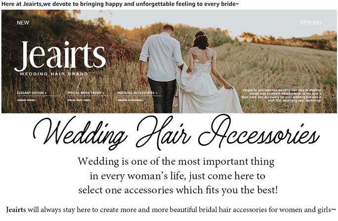 Established in 1998,Jeairts accompany many brides to spend many warm and romantic weddings together.Our shop provides many exquisite handmade wedding hair accessories.Hair combs,hair pins,hair vines can be also found in our shop.After the decoration of our accessories, each girl will definitely be more charming, elegant,confident and get many compliments.