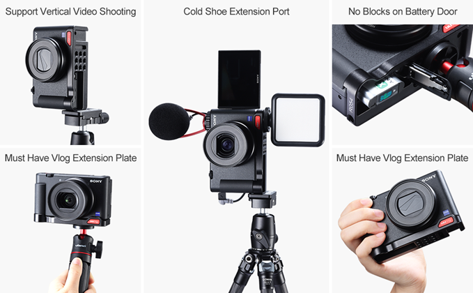 ZV-1 Camera Base Mount Bracket for Sony ZV1 Compact Camera, with Cold Shoe Microphone/Light Extension Mount on Bottom, Support Vertical Video Shooing YouTube Streaming Vlog Accessories - UURig R054