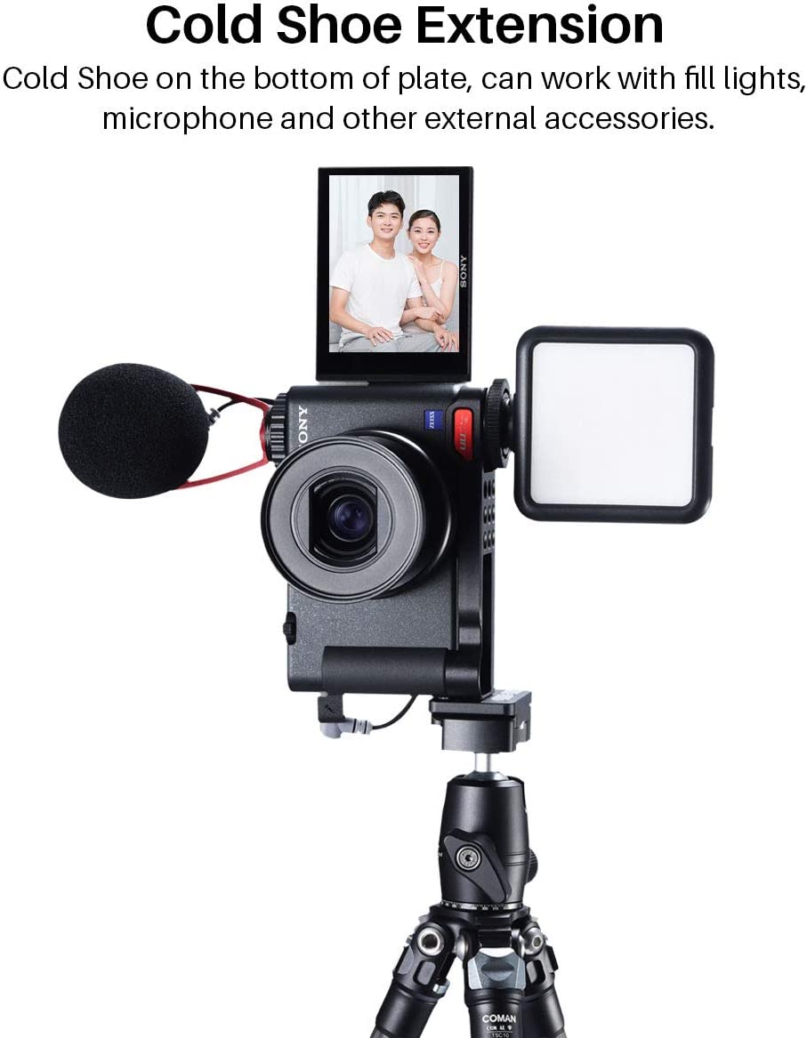 • ✔Metal Extension Base Mount Plate Suitable for SONY ZV-1 --- Cold Shoe on the bottom of plate, can work with fill lights, microphone and other external accessories.