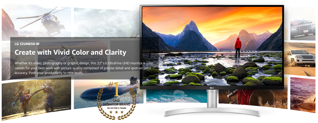 The UHD 4K IPS monitor that does it all. Elevate your views with the UHD monitor ranked #1 in the U.S. At 31.5" and 16:9 screen ratio, LG's UltraFine Monitor with UHD 4K IPS Display features realistic, accurate color, enhanced contrast, clarity and detail at wide angles. It shines as a productivity powerhouse, delivering a flexible workstation experience and easy setup, yet amplifies gaming with cutting-edge features and elevates entertainment with HDR10 and MAXXAUDIO stereo speakers. Color Gamut (Typ.) DCI-P3 95 per cent and Color Depth(Number of Colors) 1.07B.