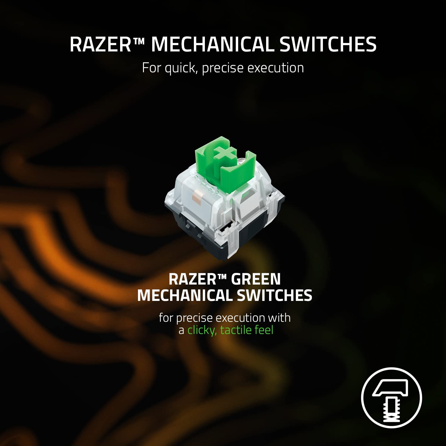 • Razer Yellow Mechanical Switches: Built for speed with an actuation point of just 1.2mm, these smooth switches have no tactile feedback and include sound dampeners to reduce its already low sound profile even further.