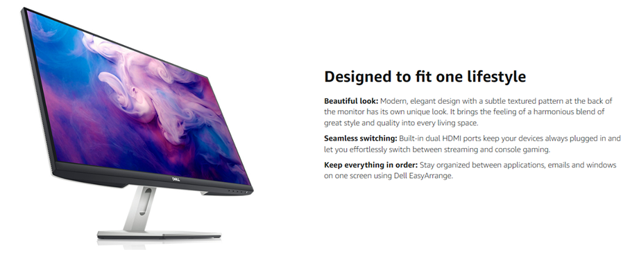 Outstanding visuals: Every image comes to life on this 27” screen with three-sided ultrathin bezel design. With QHD (2560x1440) resolution, you’ll get 1.77 times more details than Full HD.