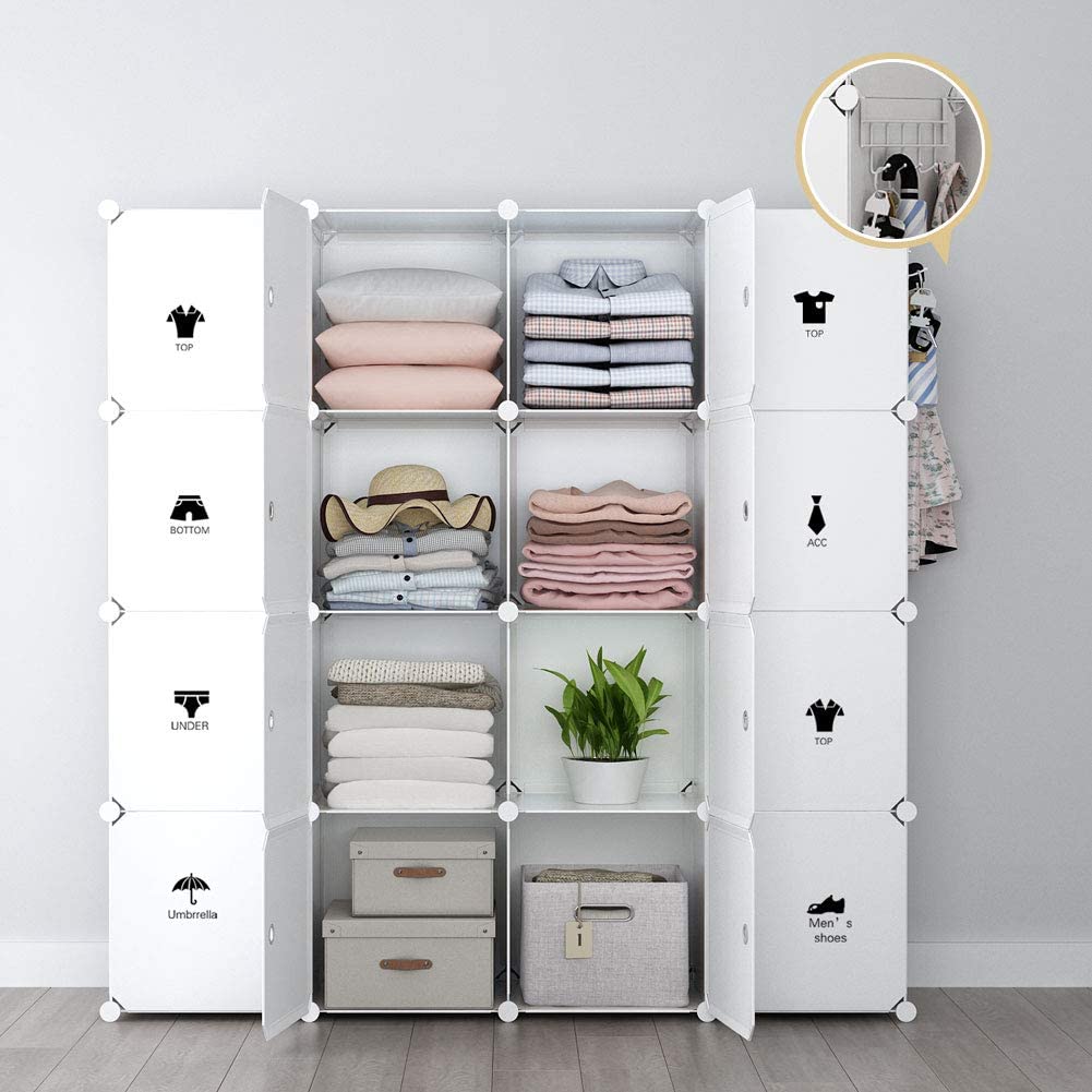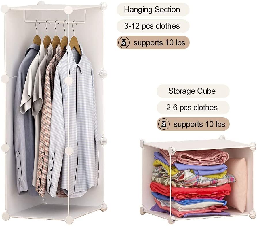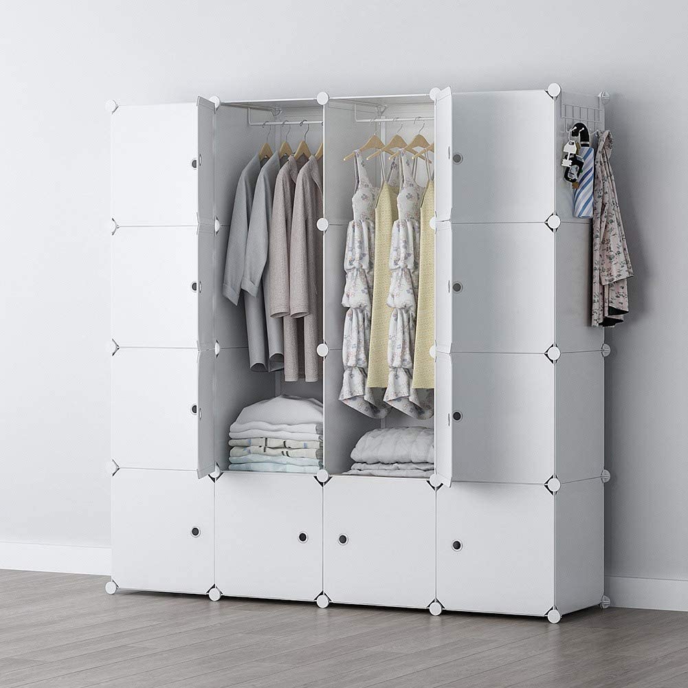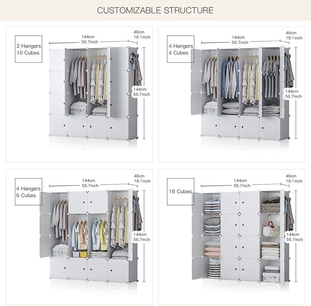 YOZO Cube Storage Organzier Portable Wardrobe Closet Bedroom Dresser (56x18x56 inches) Portable Closet Cube Shelf Armoire Pantry Cabinet, 16 Cubes, White