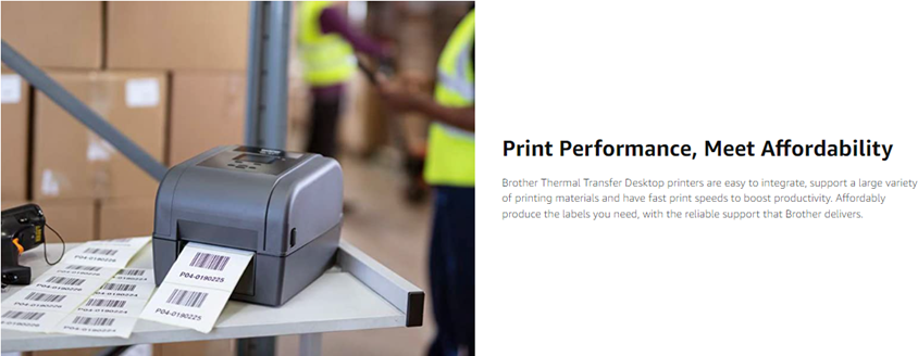 Introducing the new line up of 4 inch Thermal Transfer desktop printers from Brother. These precision-built barcode label printers deliver the right level of performance, quality and integration at an exceptional value. The Thermal Transfer Desktop printers from Brother are easy to integrate, support a large variety of printing materials. Customers can affordably produce the labels they need, with the reliability and support that Brother delivers. Thermal transfer printing is ideally suited for harsh conditions and long-term use in warehouses, manufacturing, supply chain, parcel and post.