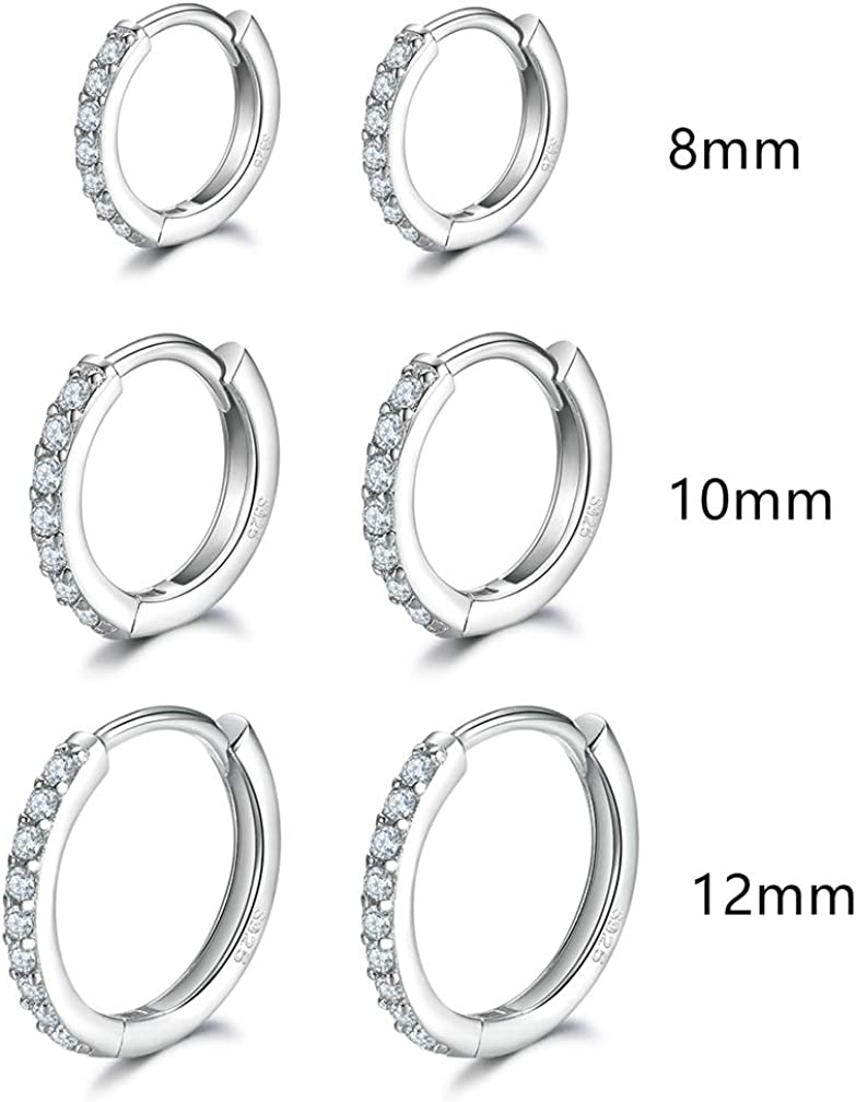 ❤PREFECT SIZE: : The Inner diameter of the cubic zirconia small hoop earring is 8/10/12mm and 2/3/4mm CZ stud earrings. Lightweight and Comfortable to Wear. 6 Different sizes suitable for Multi-Purpose Use in daily life. Not only can be as sleeper earrings, but also as Cartilage Earring Hoop.