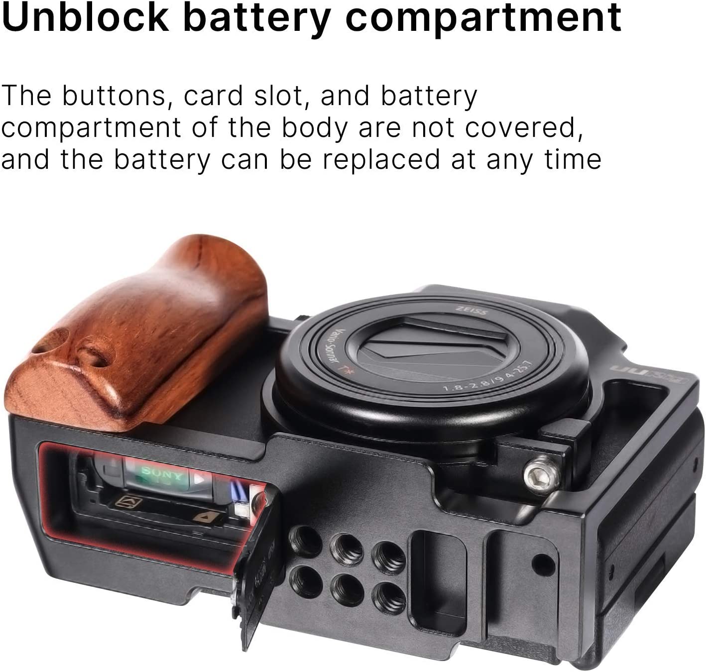 UURig ZV1 Camera Cage for Sony ZV-1 Camera Video Shooting Cage Rig Filming Accessories 3/8“ Arri Locating 1/4" Cold Shoe Extension for Microphone/ Light w Wooden Handle Grip, Vlogger Content Creator