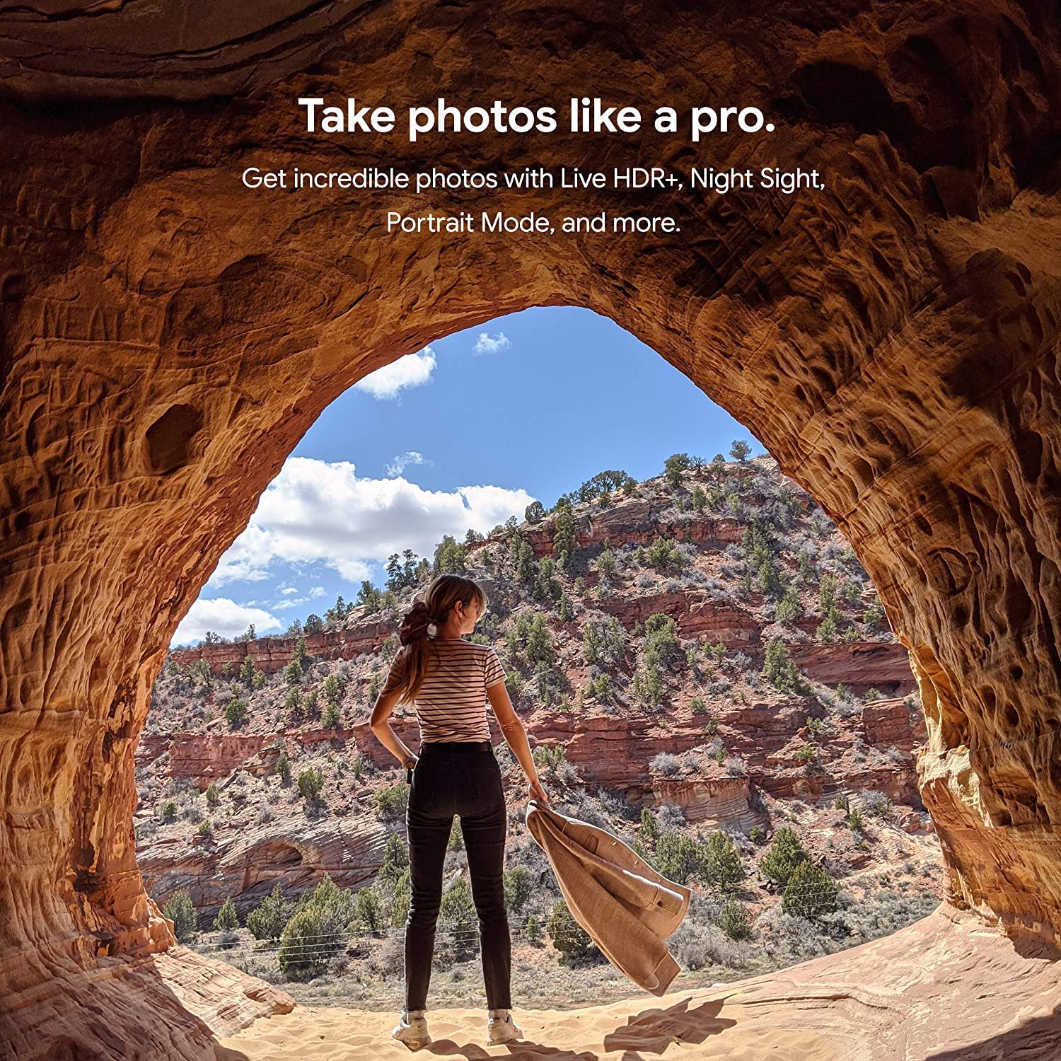 • Capture great photos using your cell phone on the 12 MP dual pixel rear camera with features like Live HDR+, Night Sight, and Portrait Mode; share photos directly from the viewfinder of your Pixel camera to Google and popular third party apps