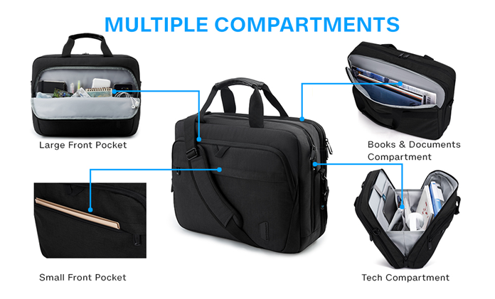 • LAPTOP PROTECTION- The dedicated laptop compartment is fully padded with EVA foam. The laptop bag can offer the optimal protection for your laptop. You don't need to worry about your notebook getting crashed on the travelling.